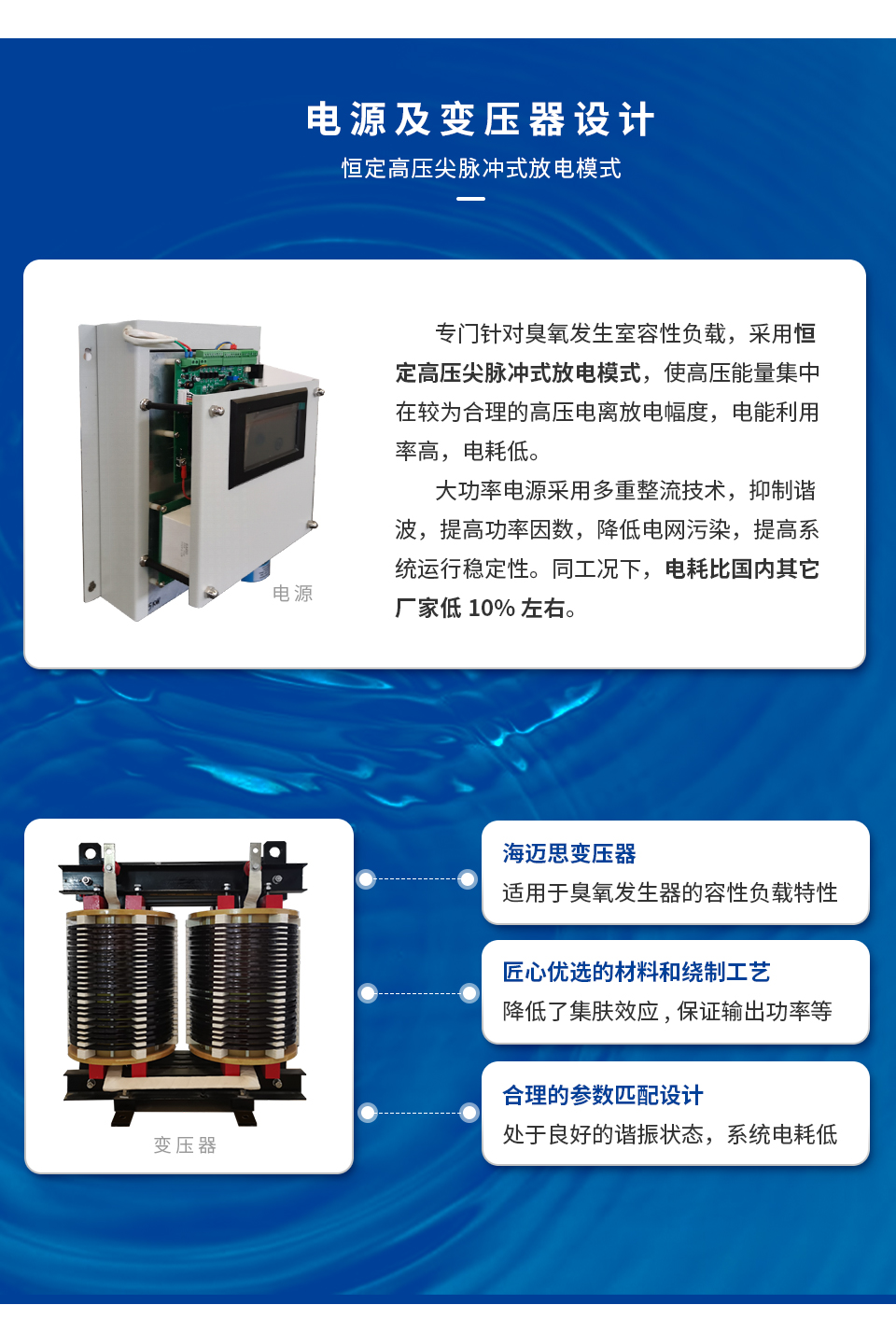 污水处理、中水回用、纯净水处理、食品加工、医药生产、化工氧化、医疗卫生、水厂、医院、工厂、生活小区、游泳池、饮料食品、制药厂、自备井、贮水池、水箱、畜牧水产养殖、冷库、景观用水等领域的水质消毒、废气处理、臭氧氧化、空气灭菌。
