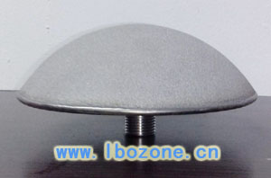 微孔纯钛曝气头以工业纯钛粉(纯度≥99.6899%)为主要原料,经高温高真空烧结而成。球面式钛曝气头球面底直径Φ100mm,弧面Φ125mm,壁厚3mm,曝气气泡0.1~2mm,且曝气阻力小、气液界面积大、气泡扩散均匀,不会产生孔眼阻塞,比常规曝气能耗降低40%,增加污水处理量近一倍。钛曝气头具有耐腐蚀性强,耐酸碱度高,使用寿命长等优点。本产品适用于城市污水、大型用水工厂新建扩建和老曝气池改造, 以及水处理工业中的臭氧曝气,化工行业催化气体曝气等。