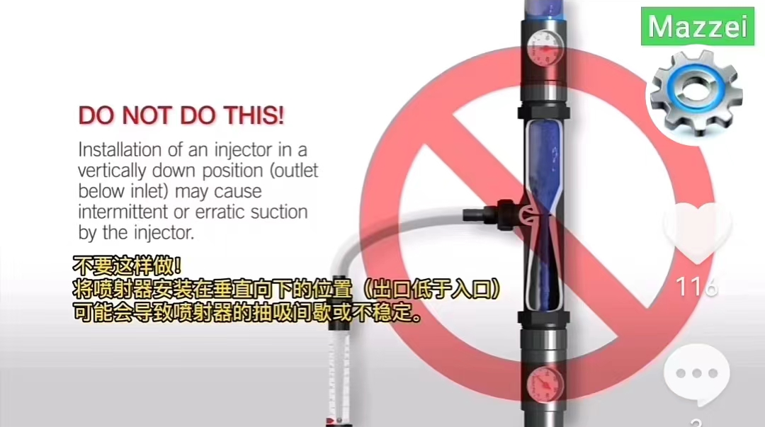 提示:射流器本身没有负压,要输入的水流量使射流器产生负压,射流器进气口才能吸气。要使射流器产生负压,必须根据每小时水流量来配射流器!而且使用射流器必须注意回水的问题。